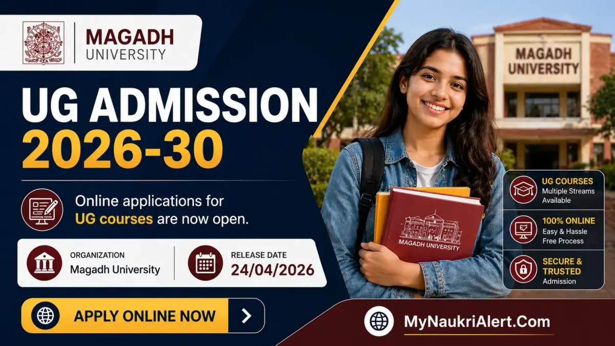 Magadh University UG Admission 2026-30 online applications for BA, B.Sc, and B.Com programs have officially commenced on 24/04/2026 at magadhonline.in. The admissions for the 1st semester will be based on the merit of the Intermediate (+2) examination conducted by the Bihar School Examination Board or an equivalent qualification. This guide provides essential details about the eligibility requirements, application procedure, crucial dates, and direct application links to facilitate a smooth admission process for students interested in Arts, Commerce, and Science streams at Magadh University.