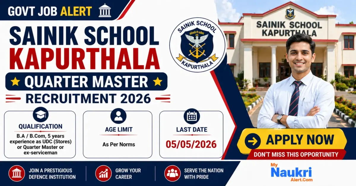 Sainik School Kapurthala Quarter Master Recruitment 2026 has been officially announced, providing an excellent opportunity for candidates seeking a stable career in the educational sector. Known for its commitment to nurturing young minds, Sainik School Kapurthala is looking for dedicated individuals to fill the role of Quarter Master. This position not only offers a chance to serve in an esteemed institution but also comes with a competitive salary and benefits.